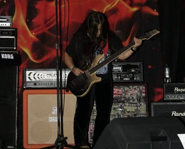 Soy bajista en Dorcas, una banda de death metal técnico donde exploro ritmos complejos y sonidos intensos con pasión y precisión.